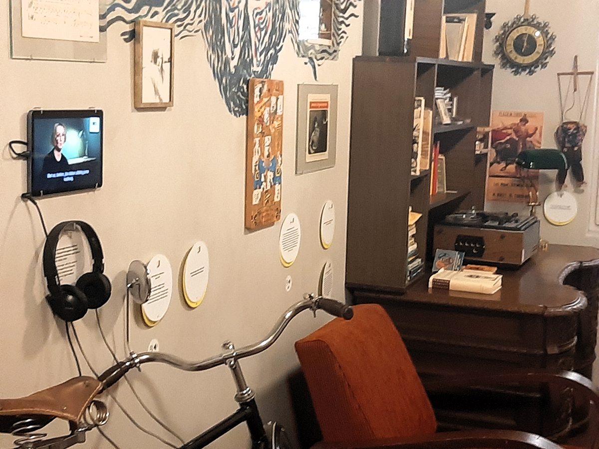 Parodoje atkurtas ir kambarys, kuriame augo, brendo, gyveno ir kūrė V. Kernagis. Jame – ir pažymių knygelės iš vidurinės mokyklos su įrašais, kad mokinys buvo išsiblaškęs, po pamokų neidavo namo ir triukšmaudavo. Šalia – jo užrašų knygelės su piešinėliais, ir vaikystės pliušinis meškiukas, ir juostinis magnetofonas, plokštelės. Tas kambarys buvo ilgas, su langu gale, jį tėvai Vytautui įrengė bute iš seno sandėliuko ir vonios bei leido jam daryti kambaryje viską, ką jis nori. Tame kambary jis praleido beveik 30 metų.