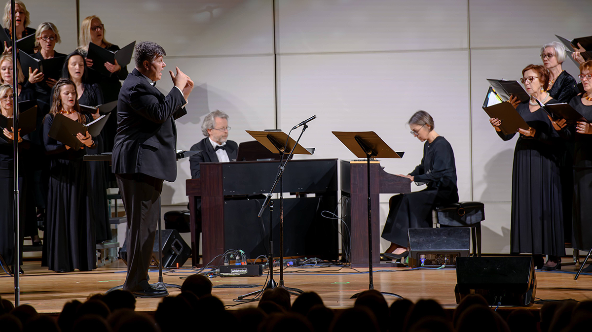„Dainavos“ ansamblis, pianistai Sonata ir Rokas Zubovai, dainininkai Agnė Giedraitytė bei Martynas Matutis, poetas, kunigas Valdas Aušra muzikos ir žodžio mylėtojams padovanojo ypatingą koncertą. Jo kulminacija tapo kompozitorės Nijolės Sinkevičiūtės oratorijos „Chronos ir Kairos“ pasaulinė premjera.