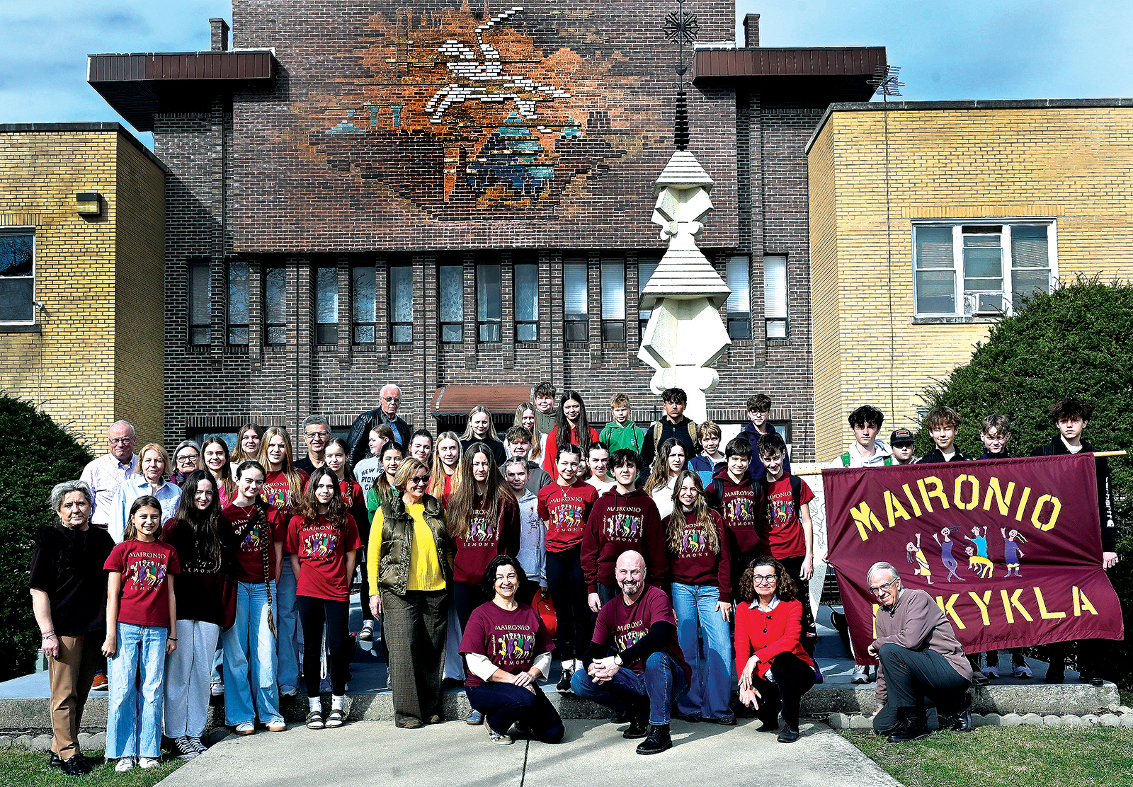 Praėjusį šeštadienį, kovo 21 dieną, būrys Maironio lituanistinės mokyklos vyresniųjų klasių moksleivių, vadovaujamų lydimų istorijos mokytojų Gintauto Steponavičiaus, Rasos Fernandes ir grupės mokinių tėvų, apsilankė Jaunimo centre (JC) Čikagoje. Šiai gausiai grupei vadovavęs mokytojas G. Steponavičius sakė, jog atvyko dviejų septintų, dviejų aštuntų ir dviejų devintų klasių mokiniai – iš viso 36 vaikai.