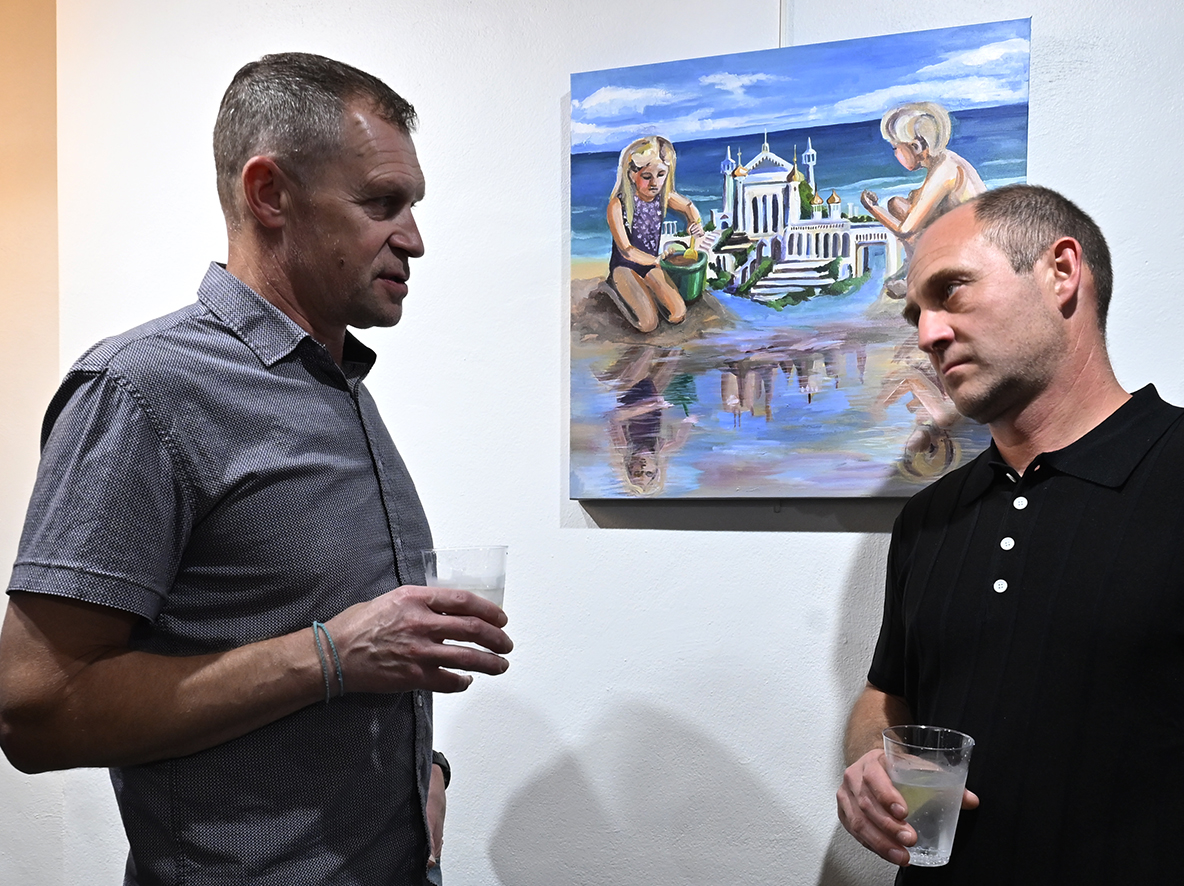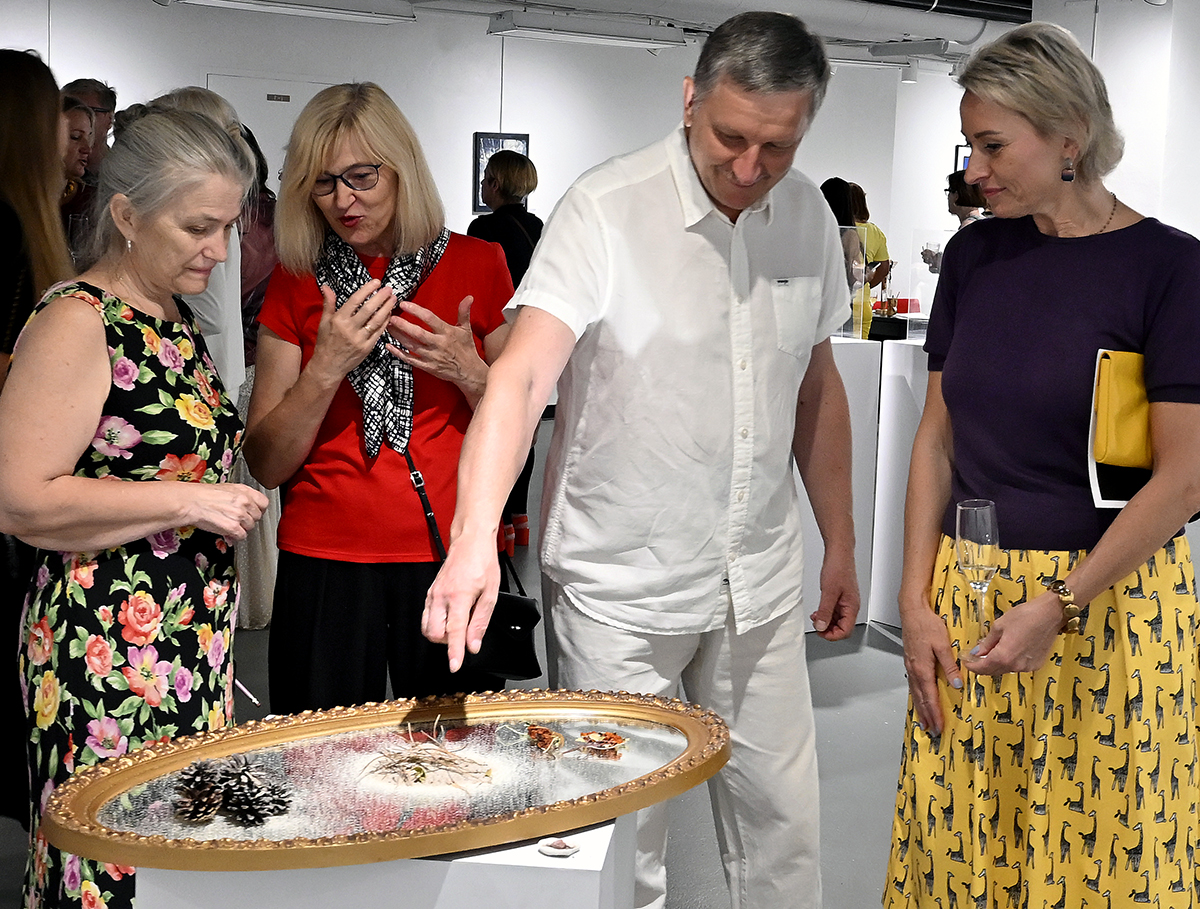 Iš tiesų, rodėsi, kad meno kūriniai tiesiog kviečia ir nepaleidžia parodos svečio, nes verčia sustoti, pama­tyti, pa­jausti, susipažinti ir diskutuo­ti. O diskusijos liejosi kaip sraunios upės tai atsitraukus nuo paveikslo, kad pamatytum jo visumą, tai priartėjus, kad įžvelgtum smulkiausias detales ir užuominas, kviečiančias nertigiliau į kūrėjo pasaulį.