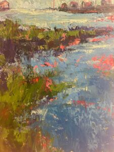 Gemos Phillips tapyboje šįkart ypač traukė dangaus ir jūros horizontai, susiliejantys marinistikos cikle „Land-to-Sea“. Tai darbai, kuriuose spalva tampa ne tik forma, bet ir būsena. Rožiniai, oranžiniai, violetiniai ir melsvai žalsvi tonai kartais primena saulėlydį prieš audrą, kartais – akimirką, kai dangus dar šviesus, o jūra jau tamsėja.