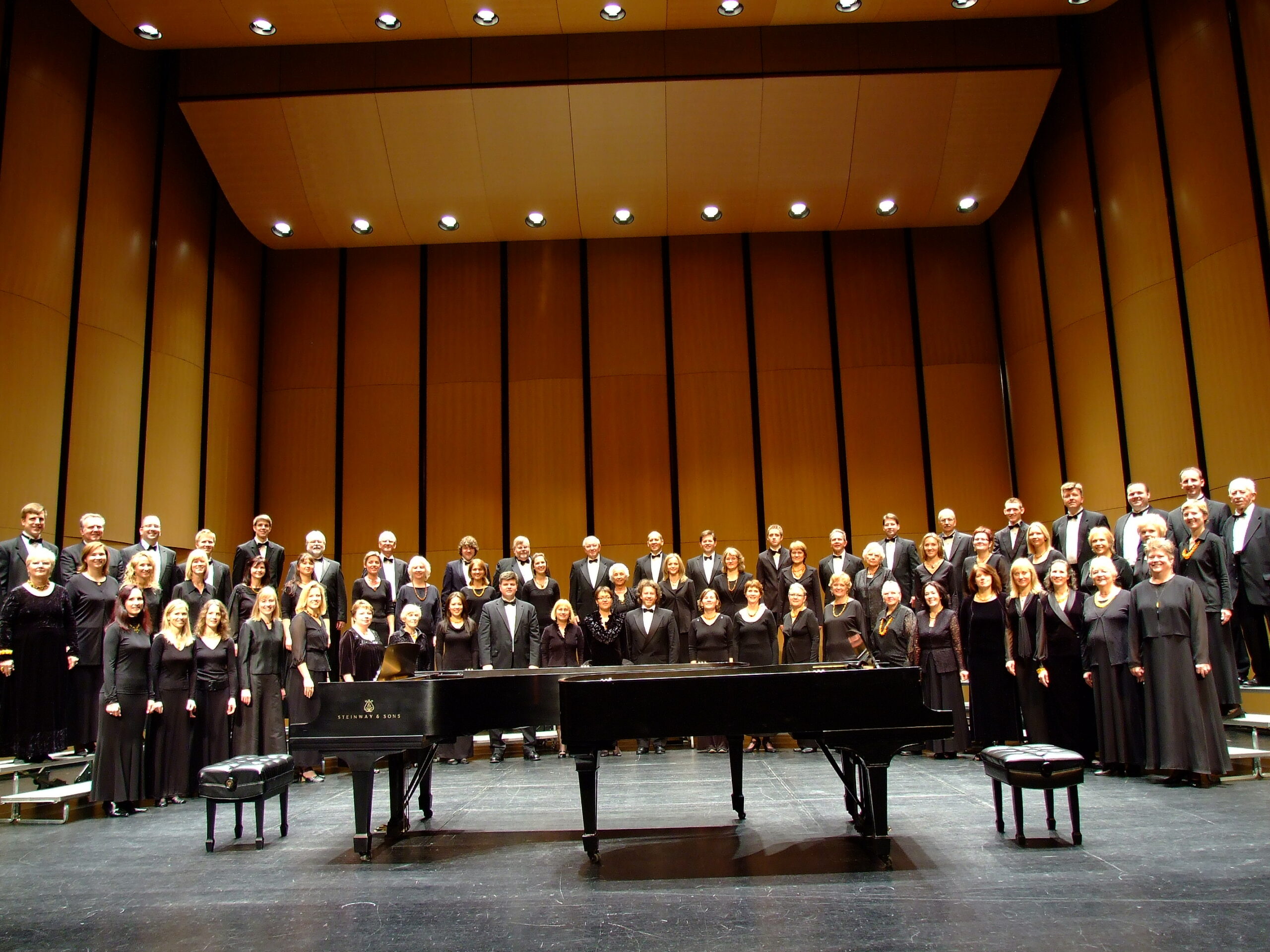 Pirmojoje koncerto dalyje skambės Claude Debussy, Morten Lauridsen ir Johannes Brahms kūriniai fortepijonui keturioms rankoms ir mišriam chorui. Skirtingų epochų muzika čia susitiks bendrame skambesyje, kurį atliks pianistai Sonata ir Rokas Zubovai bei choras „Dainava“.