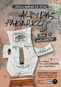 Alvydas Pakarklis. Tikriausiai nėra Čikagoje gyvenančių, menu besidominčių žmonių, kurie nepažinotų paties dailininko, nebūtų girdėję jo vardo ar nebūtų matę „pakarkliškų“ jo molio darbų. Esame jo darbus matę personalinėse parodose, sutikę jį ne vienoje kolegų menininkų parodoje. Jau ne vienerius metus JAV lietuvių Poezijos pavasario dalyviai apdovanojami Alvydo darbais. Lapkričio 9 d. 1 val. p. p. Alvydas kviečia visus į Čiurlionio galeriją Jaunimo centre į renginį „Ateik ir pa(si)RAŠYK“ pabūti ir kartu su juo apžvelgti 75 minutes GYVENIMO.