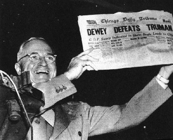 lapkričio 3 dienos laidoje paskelbė „Dewey defeats Truman”. Atsimenu, kai ir