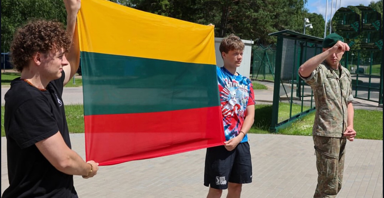 Vėliau nuvykome į Lietuvos didžiojo kunigaikščio Gedimino štabo bataliono karinę bazę, kur mus iš karto pasitiko kariškiai. Visų pirma, mums parodė ir leido patiems pabandyti, kaip nuleidus tautos vėliavą, taisyklingai ją sulankstyti.