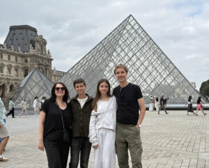 Gabrielius Alekna with his wife Mariana and their children Nikolas and Clara at the Louvre.
