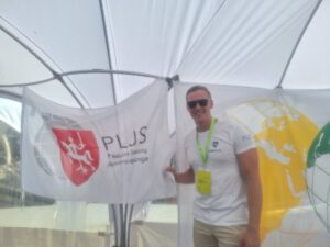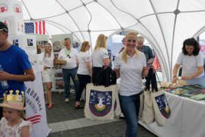 Simonas Bingelis šventės lankytojams pristatinėjo ne tik JAV lietuvių jaunimo bendruomenę. Vaikinas atstovavo Pasaulio lietuvių jaunimo sąjungą ir leido su ja susipažinti tiek Lietuvoje gyvenantiems, tiek į ją atvykusiems tautiečiams.